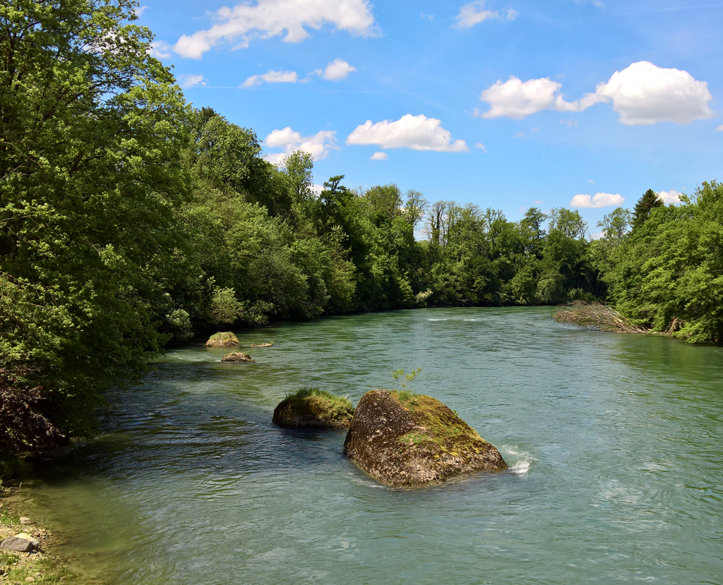 Ein paar kleine Päuslein gönnten wir uns zwischendurch dennoch – um dem vielfältigen Vogelgesang im Hegnau zu lauschen, das üppige Grün des Maienwalds einzusaugen und darüber zu spekulieren, ob man nicht allenfalls doch schon baden könnte. Das Wetter war nämlich mild, und die Reuss leuchtete einladend. Allein, die Vernunft machte uns bewusst, dass es gebirgiges Schmelzwasser war, das da so verlockend an uns vorüberzog. Ruth erwog, Evi als Thermometer einzusetzen: «Wenn sie quietscht, dann dürfte es für mich selbst noch zu kalt sein.»