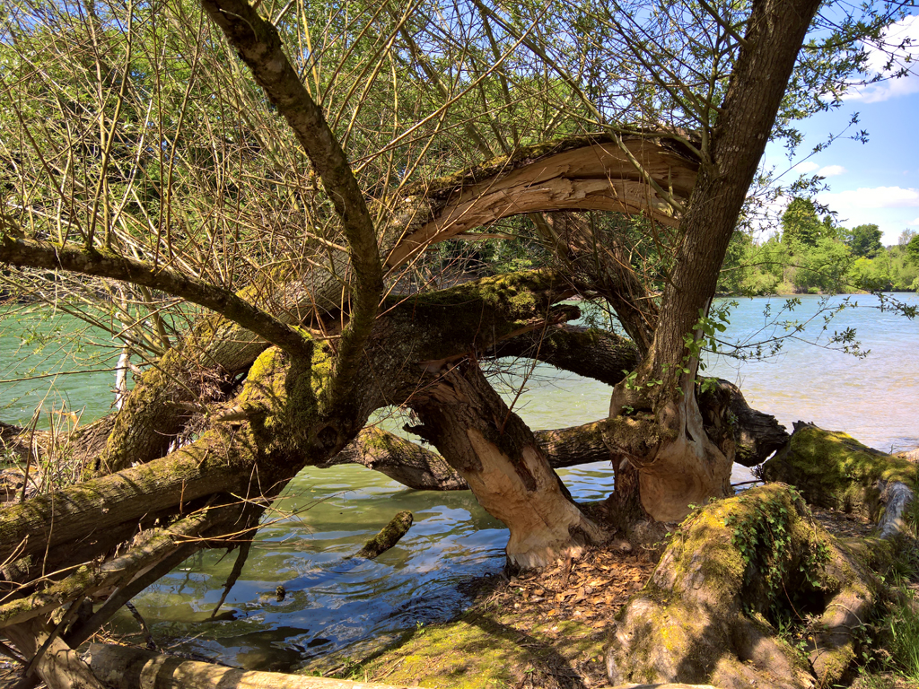 Die Reuss erschien uns auch diesmal spürbar anders als die Aare: Weniger träge, weniger leise, weniger glatt. Überall rauschte, sprudelte und wirbelte es. Man möchte nicht unbedingt in diese quirligen Fluten geraten. «Reuss kommt doch sicher von Reissen», mutmasste Ruth. Das klang auf Anhieb ziemlich einleuchtend. Ein Blick in den Guugel ergab dann allerdings, dass dem kaum so sein dürfte.
