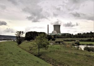 Alsbald entspann sich ein subtiler, jedoch nicht offen ausgetragener Disput zwischen Sigi, der mehrmals an Anti-AKW-Demos teilgenommen hatte, und Stefan, den der wuchtige Kühlturm und das massive Containment von Leibstadt an sein bernisches Trauma erinnerten: Würde das grosse, alte Bern mit der Stilllegung von Mühleberg nicht einmal mehr an Grösse und Einfluss verlieren? Schliesslich begann es zu tröpfeln und wenig später recht wacker zu giessen, so dass wir uns mehr auf unsere physische Befindlichkeit konzentrierten und, die Energieszene beiseite lassend, ins Dörfchen Leibstadt marschierten.