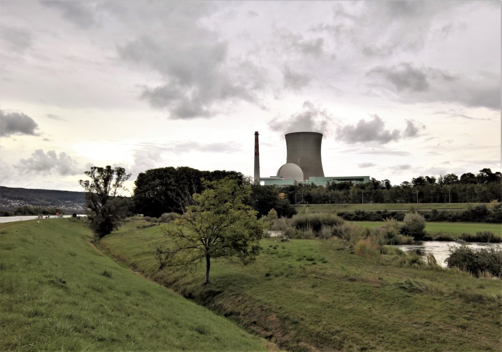 Prima, dann brauchten wir uns also für den Rest der Wanderung weder zu fürchten noch zu grämen. Bald erreichten wir Koblenz und kamen tatsächlich sogar am Tempel der anonymen Wandergruppe vorbei. Merkwürdigerweise wurde es just in diesem Augenblick bedrohlich finster. Eine mächtige Wolke schob sich vor die Sonne. Warf da etwa schon die Dampffahne des nahen AKW Leibstadt ihren Schatten? Es war jedoch nur der angekündigte Wetterwechsel, der sich mit Böen und Kühle ankündigte.