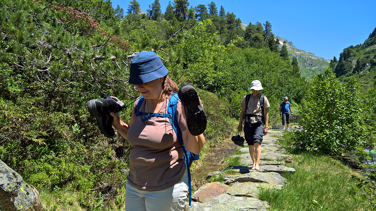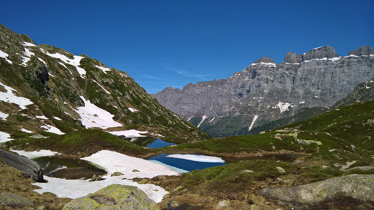 Während sich das Mittelland bei Temperaturen von 35 Grad in eine Friteuse verwandelte, erquickten sich die Aaronauten in Schnee und Gletscherwasser: Die Tour vom 30. Juni 2019 führte sie ins Einzugsgebiet des Gadmerwassers. Eiskalt fummelten sie am «Konzept» herum, indem sie sich gleich zum Einstieg eine Kaffeepause im Berghotel Steingletscher gönnten. Konsequenterweise liessen sie die Wanderung am Ziel in Gadmen mit kühlen Erfrischungsgetränken ausklingen.