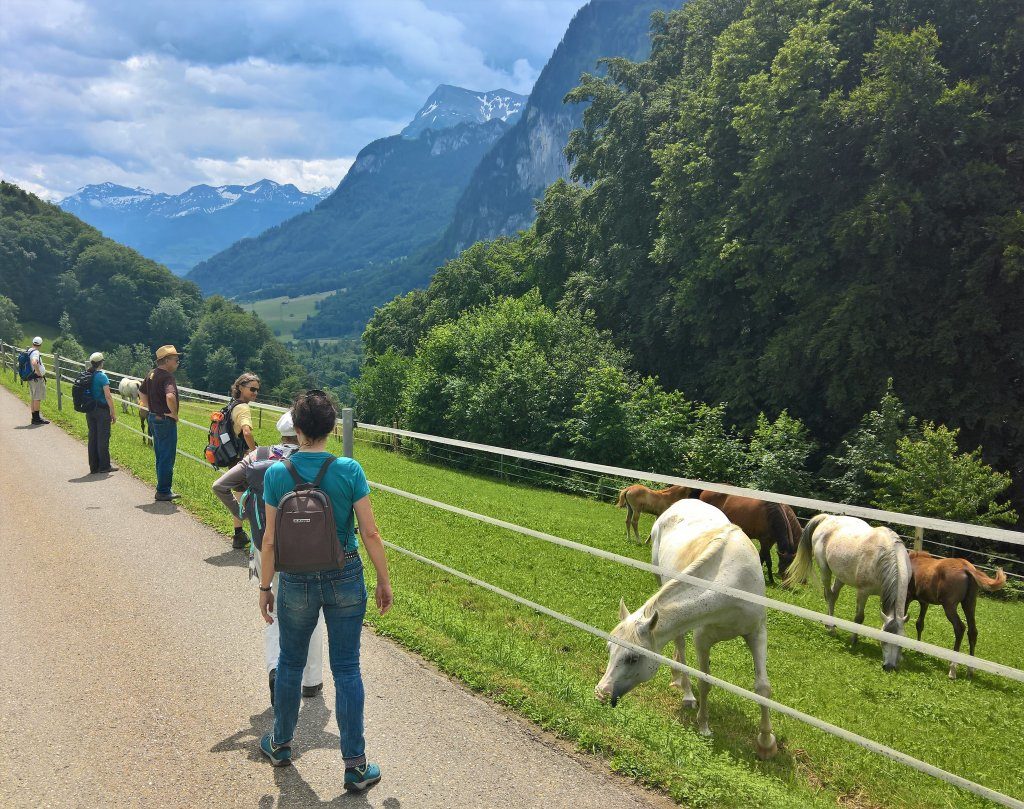 Glücklicherweise war das der einzige nennenswerte Abstieg, mit dem die Aaronauten auf ihrer Tour durch das Glütschbachtal am 10. Juni 2018 konfrontiert waren. Ansonsten war es eine flache Gegend, die sie durchstreiften. Von einem Tal zu sprechen, erwies sich im Nachhinein jedenfalls als etwas gewagt.