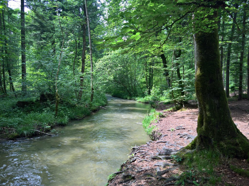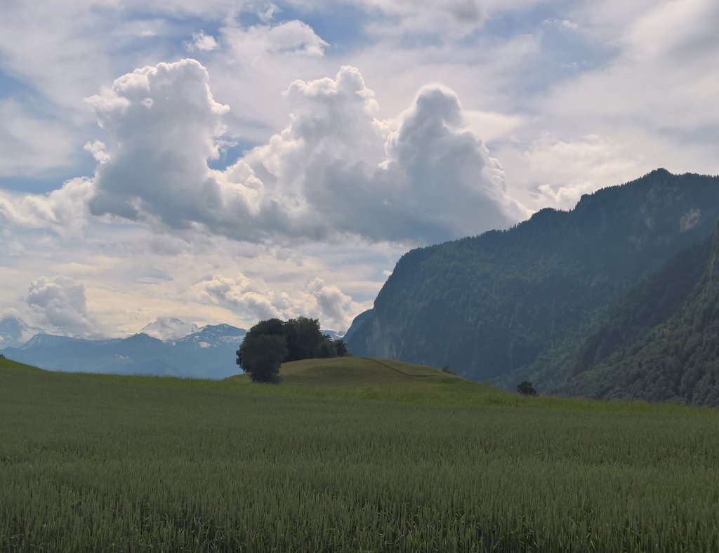 Auf lauschigen Uferpfaden bummelten wir von dort dem Glütschbach entlang, was wiederum eine Angelegenheit war, deren Fortbestehen man gerne noch eine längere Weile in Kauf genommen hätte. Doch nach einem abschliessenden Picknick bei den zu Tropfsteinhöhlen unterspülten Felswänden galt es alsbald den schattigen, kühlen Wald zu verlassen. Erneut durchstreiften wir blühende Wiesen, so dass die Histamin-Eruptionen nicht lange auf sich warten liessen. Speziell für Heuschnupfen-Masochisten eingerichtet war ein Bänkli, das mitten im hüfthohen Gras stand. Gesponsert war es von einem Pflegeheim mit dem sinnigen Namen «Niesen-Blick». Hatschi!