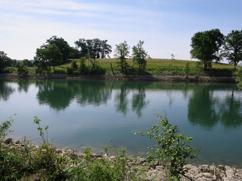 Erneut stand ein Kanal auf dem Programm. Im Unterschied zur sterbenslangweilig korrigierten Hasli-Aare und zur nicht minder öden Hagneck-Rinne ist der Nidau-Büren-Kanal jedoch mit viel Ufergehölz ausgestattet. Zudem verläuft er nicht pfeilgerade, sondern beschreibt sanfte Kurven und wirkt darum wohltuend abwechslungsreich. Nach der Safnerenbrücke wurde es allerdings trotzdem etwas langweilig, weil die Strecke asphaltiert ist.