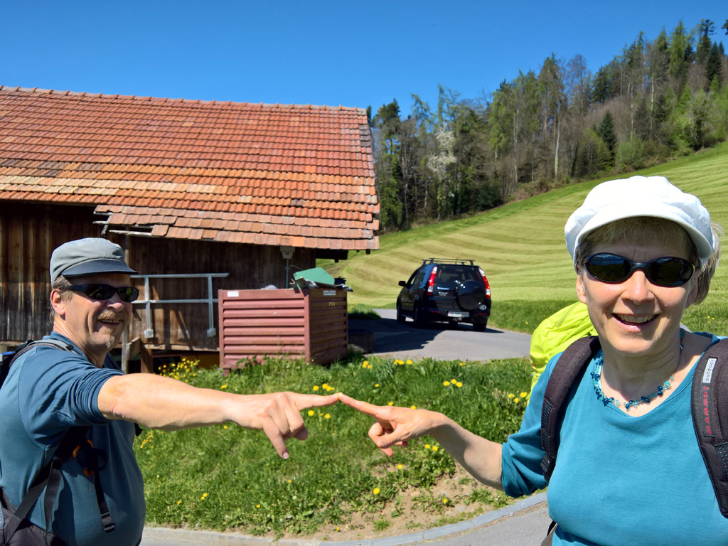 Die Gefahrenherde folgten nun Schlag auf Schlag. Beim Picknickplatz kurz vor Burech lud eine mobile Toilette die Damenwelt zu zivilisierter Erleichterung ein. Allerdings gab es kein fliessendes Wasser und dadurch auch keine Gelegenheit zu schicklicher Händereinigung, was einen Teil der Herrenwelt zu vollkommen berührungsfreiem Wandern veranlasste, bis beim nahen Feuerwehrmagazin das Hygienedefizit weggespült werden konnte.