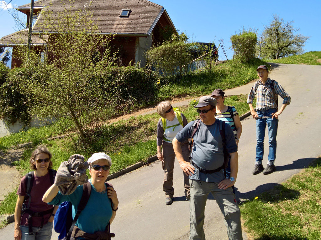Auf der anderen Seite des Grabens ging es steil nach Sigriswil hinauf, was zwar ordentlich anstrengend war. Doch das finale Feuerwerk an Natureindrücken hatte Ruth und Cornelia offenbar dermassen erquickt, dass sie in geradezu provozierender Frische die Bushaltestelle bei der Kirche erreichten. Dort bot sich uns ein überraschend kläglicher Anblick: Die Bequemfraktion hing nämlich halbtot in den Seilen. Urs jammerte kleinlaut, sie hätten kein Magnum im Dorf. «Für dich heisst das in dem Fall offensichtlich Magnümm», konstatierte Ruth.